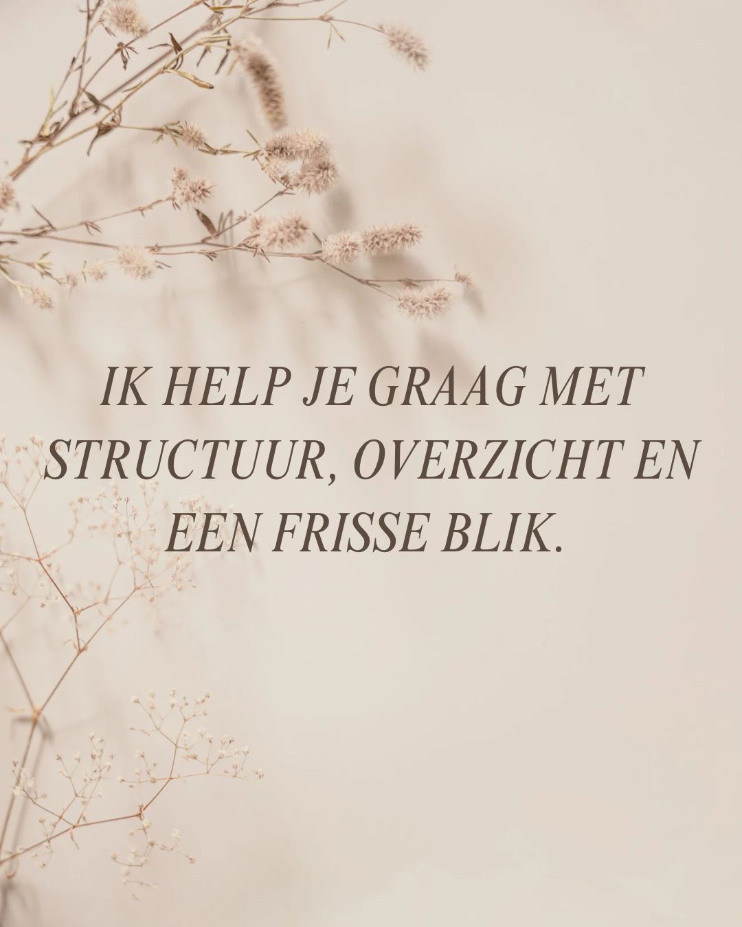 - Dankzij mijn brede werkervaring, levenservaring en algemene kennis denk ik verder dan alleen de vraag die je stelt. Of het nu gaat om zakelijke structuur, efficiënter werken of balans in je dagelijks leven: ik bied praktische adviezen en een frisse en een nuchtere blik.